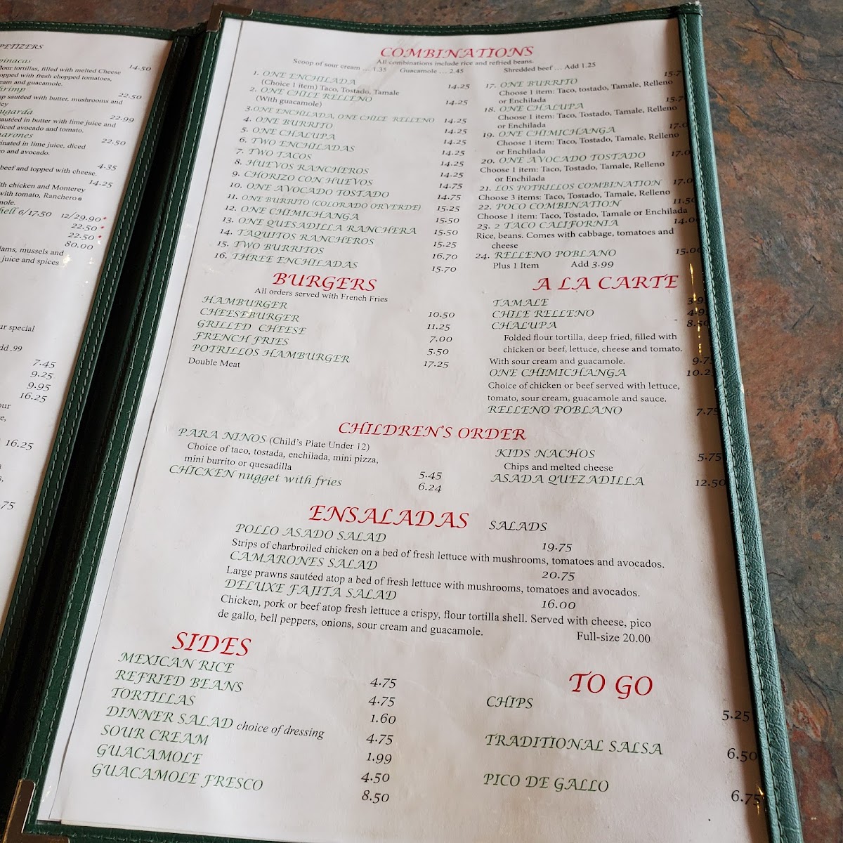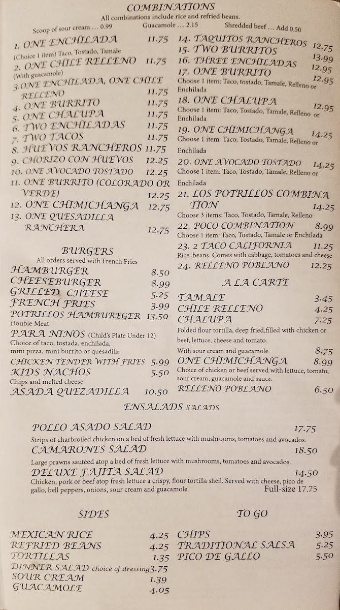 Los Potrillos Menu